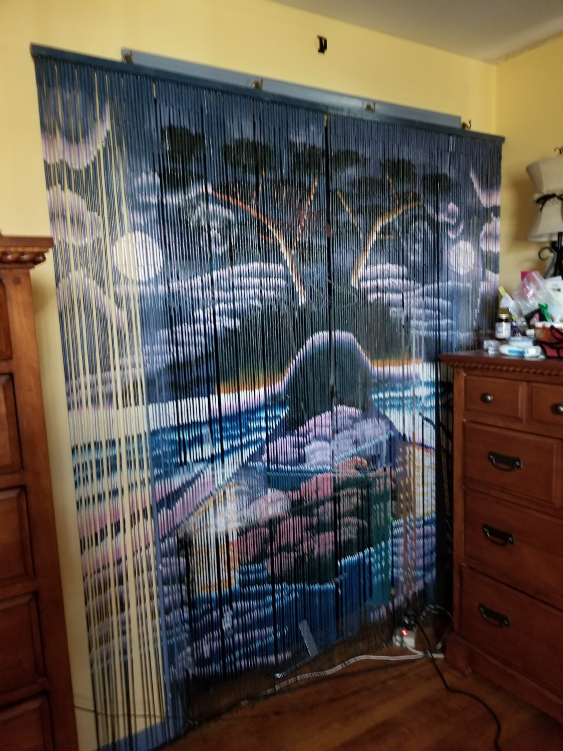 It is made from authentic bamboo and hand strung. One curtain contains 90 strands across and is perfect for doors, patios, porches and doorways. It can be room dividers, wall hangings or as a tropical window.