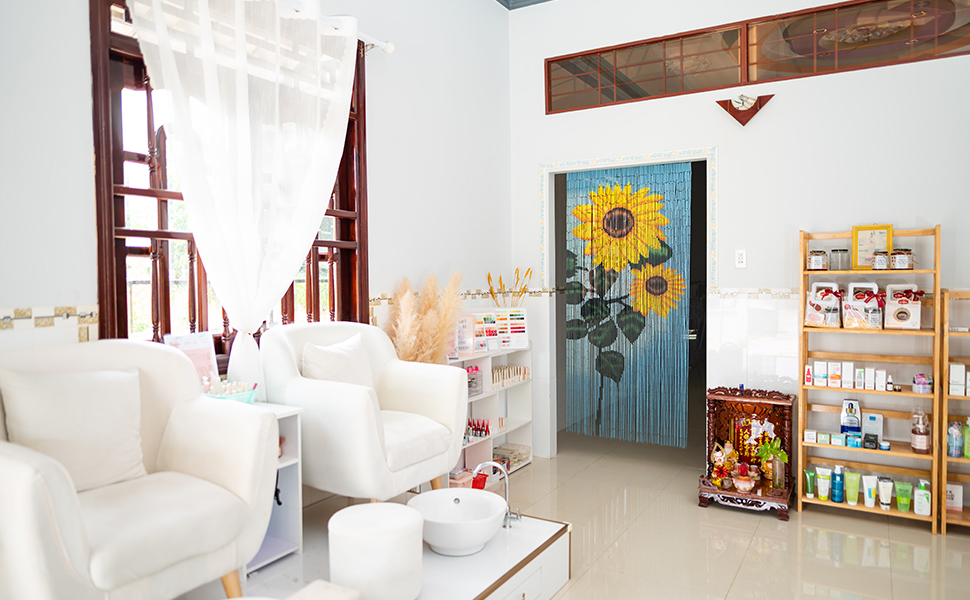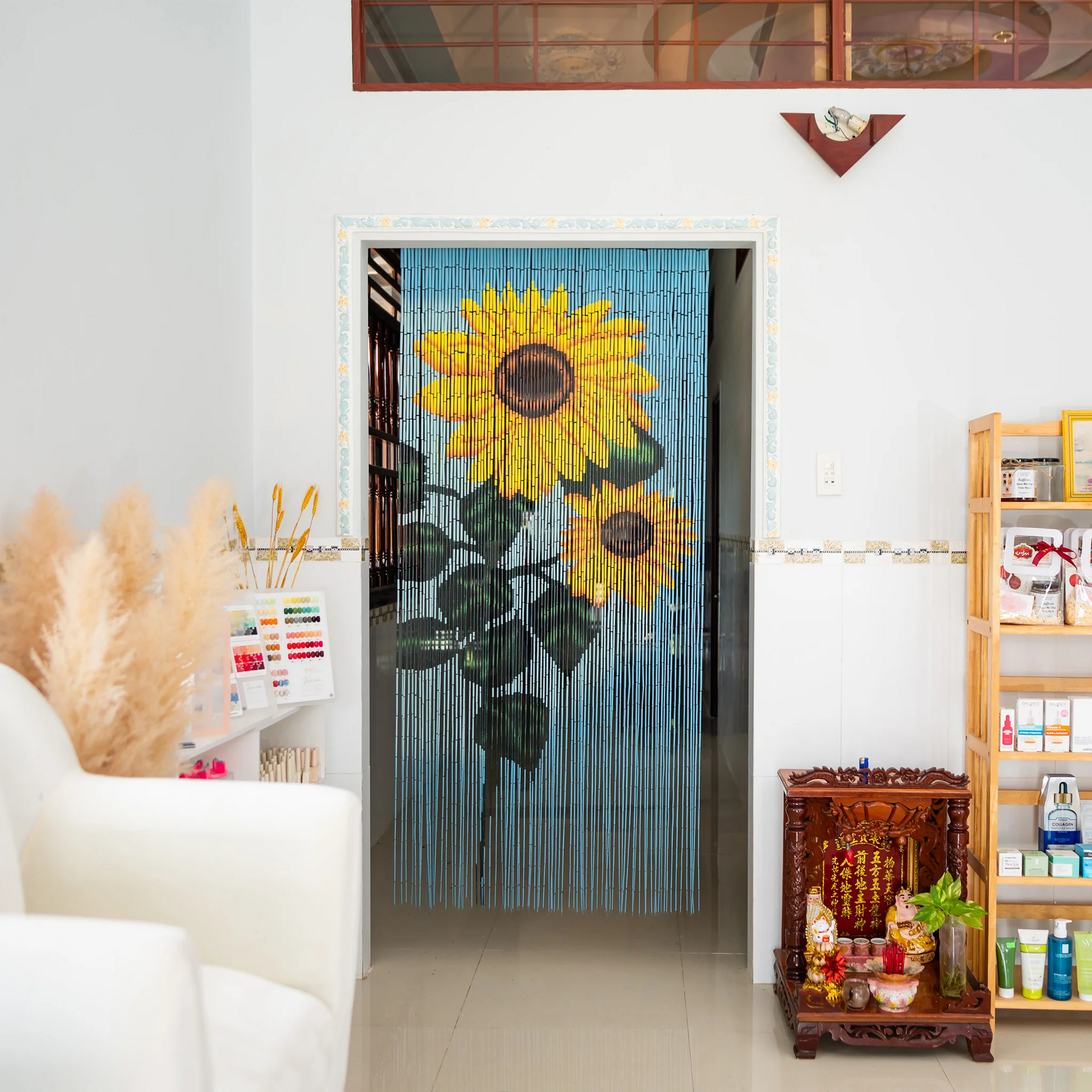 Sun Flower Bamboo Curtain Beaded Handmade Home Decor Wall Hanging Art Doorway