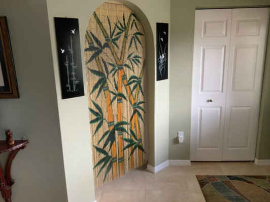 Tropical Bamboo Stalks Handmade String Beaded Doorway Curtain Room Divider Wooden Painted Art