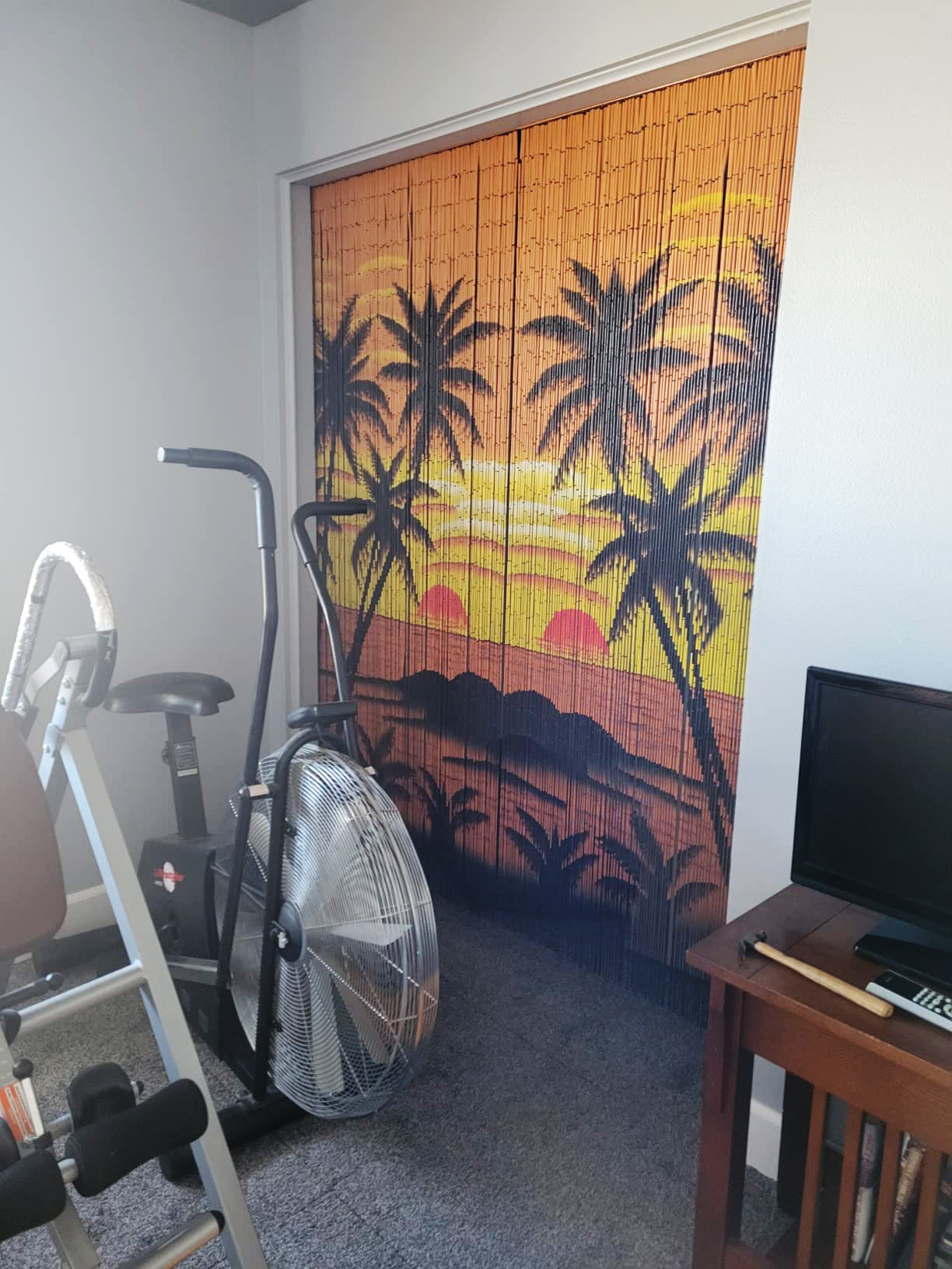 Tropical Sunset Palm Tree Bamboo Beaded Curtain Hand Painted Doorway Bathroom Wall Art Home Decor